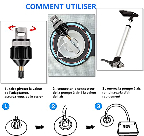 Specification: LATRAT Adaptateur de Kayak, Adaptateur Pompe Kayak Embout de Gonflage Adaptateur de Valve Convertisseur de Pompe à Air pour Sup Paddle Gonflable Bateau Pneumatique