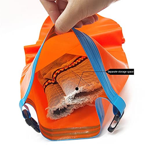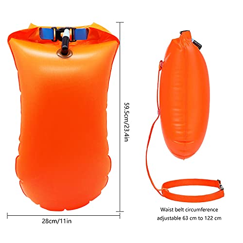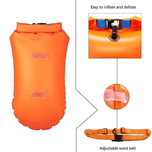 Specification: Bouée de Natation et Sac Sec, 20L Bouée de Sécurité la Natation en Eau Libre pour Les Triathlètes, Kayakistes, Plongeurs en Apnée (Orange)